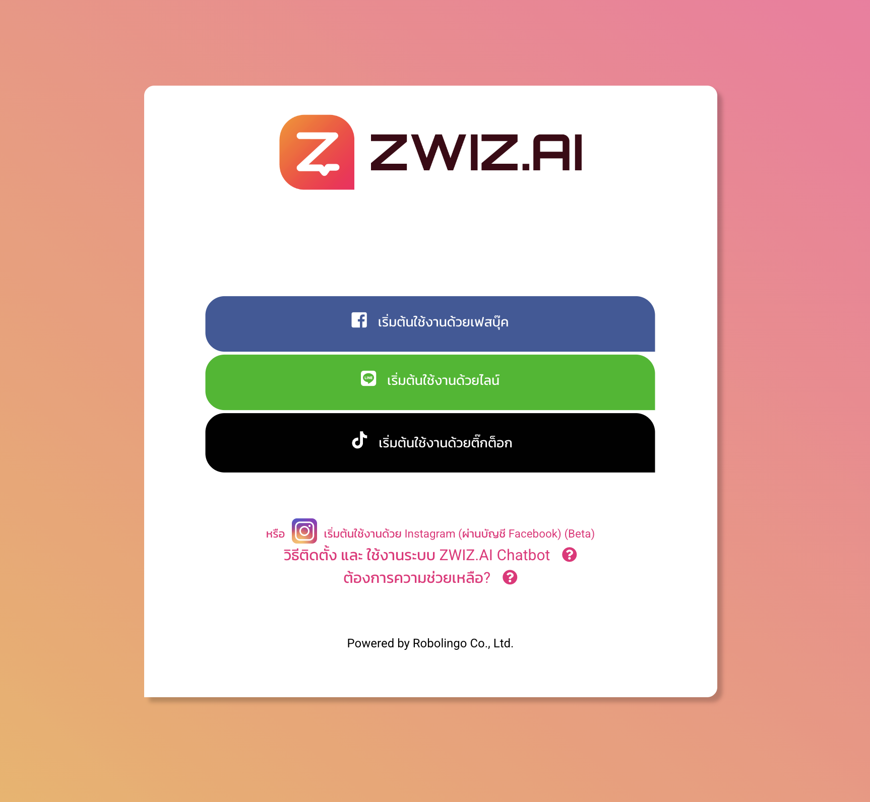 คลิกที่ “รูปน้อง Zee” หรือ ติดต่อที่เพจ ZWIZ.AI หรือ เข้า Group ZWIZ.AI