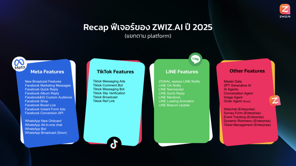 ฟีเจอร์ ZWIZ.AI ครบทุก Product ครอบคลุมทุกแพลตฟอร์มหลัก