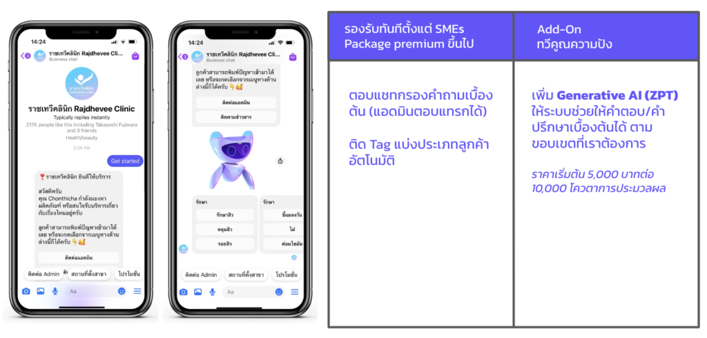 สำหรับแบรนด์ไหน ที่อยาก Advanced และมีตัวช่วยเพิ่มขึ้น เราก็มีแชทบอทแบบ Generative AI มาช่วยตอบแชทบน Social Media ของแบรนด์ให้ได้ด้วย