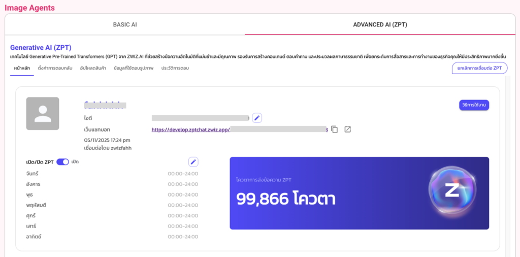 เมื่อเลือกใช้งาน Advance AI (ZPT) และเชื่อมต่อเรียบร้อยแล้ว อ่านวิธีการเชื่อมต่อ