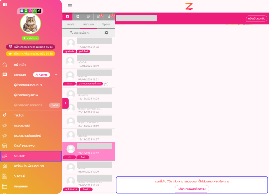 1. การใช้งานจากหน้า “รวมแชท”