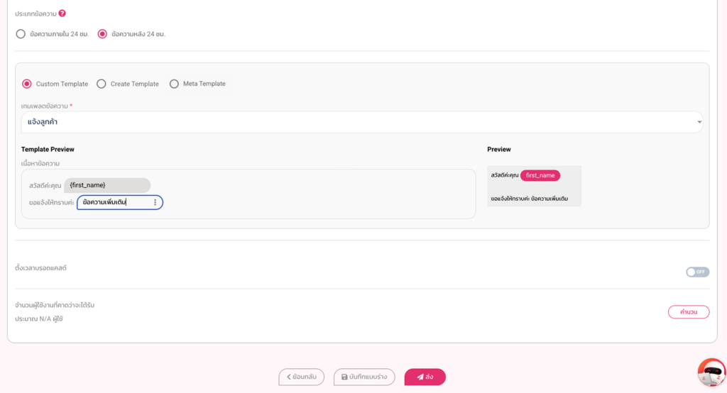 - ข้อความที่ส่งได้จะต้องผ่านการอนุมัติจาก Meta แล้วเท่านั้น