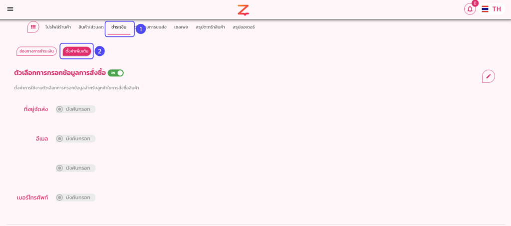 ไปที่เมนู ร้านค้า / เซลเพจ > ช่องทางการขนส่ง