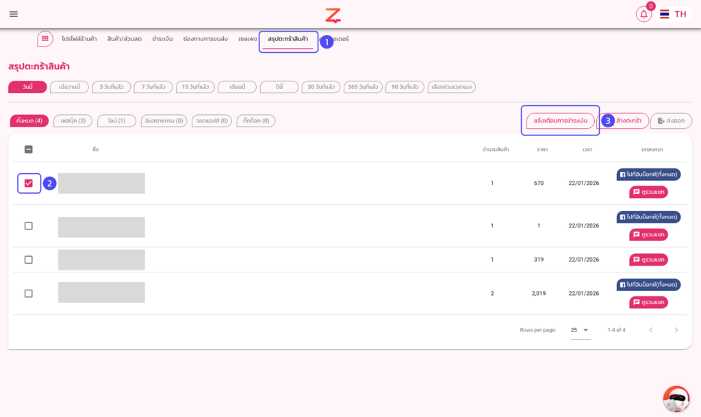 แจ้งเตือการชำระเงินสำหรับลูกค้าที่มีสินค้าในตะกร้า