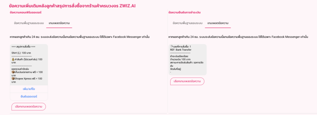 Custom template : เทมแพลตข้อความ (สร้างเองหรือเทมแพลตพื้นฐ้านของระบบ ZWIZ)