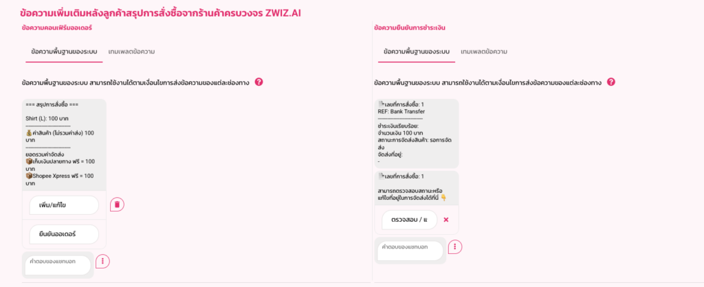 3. การใช้งานในหน้าการตั้งค่า “ข้อความหลังการขาย”