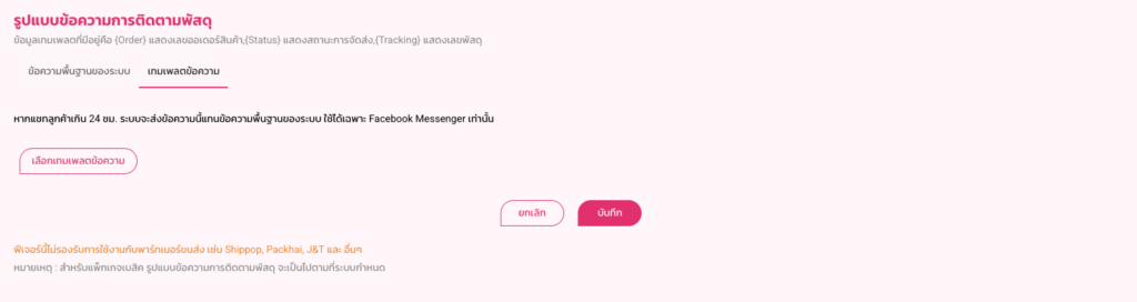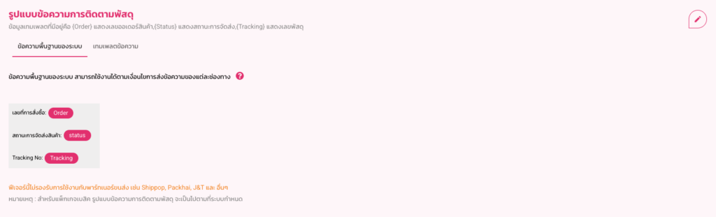 4. การใช้งานในหน้าการตั้งค่า “ข้อความติดตามพัสดุ”