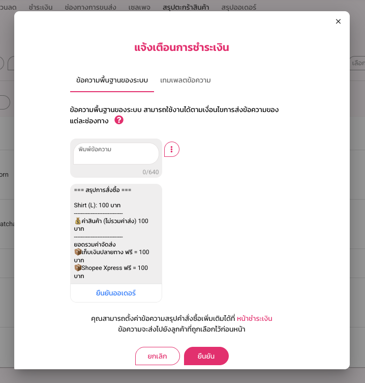 ใช้สำหรับการส่งข้อความสรุปออเดอร์ ข้อความยืนยันการชำระเงิน ให้กับลูกค้า