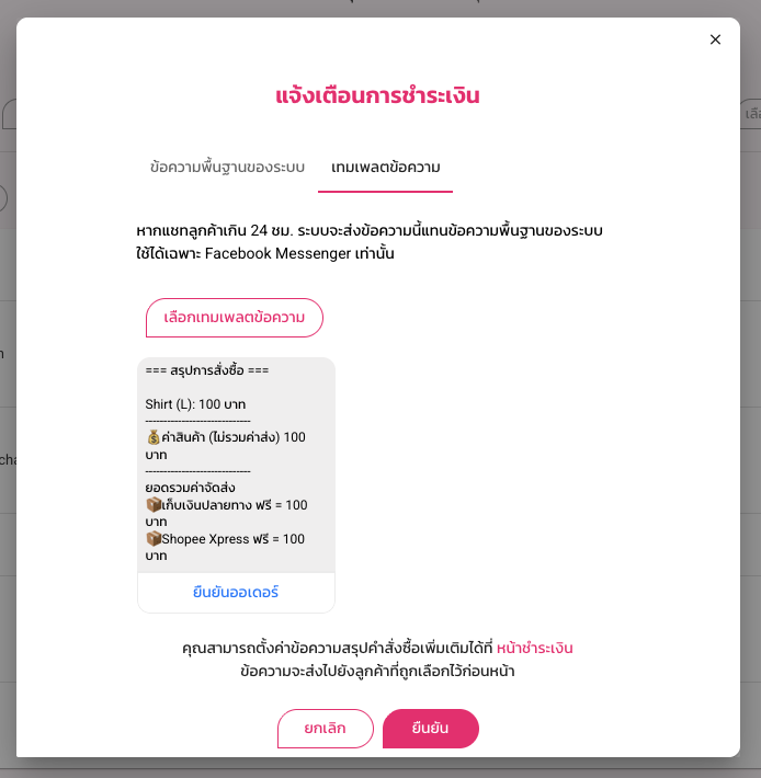 เทมแพลตข้อความ : ใช้ได้เฉพาะ Facebook Messenger เท่านั้น กรณีแชทลูกค้าเกิน 24 ชม.