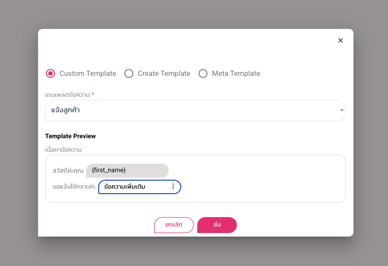 สร้างเทมเพลตข้อความหน้าเลือกใช้เทมแพลต