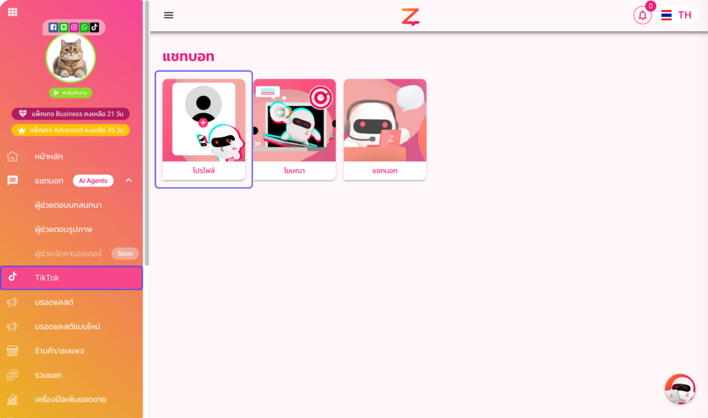 หลังจากที่เราได้ทำการเชื่อมต่อ TikTok เข้ากับ ZWIZ.AI เรียบร้อยแล้ว เรามีฟังก์ชั่นการตอบกับคอมเมนต์เหมือนกับ การเชื่อมต่อบนเฟสบุ๊ค,ไลน์