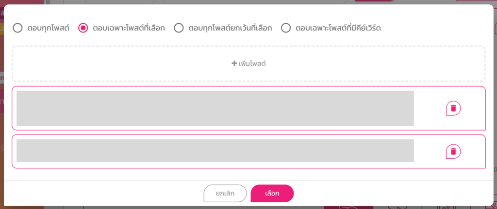 จะเป็นการเลือกเฉพาะโพสต์ที่ต้องการให้บอทตอบกลับคอมเมนต์