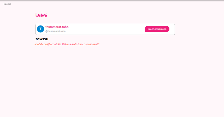 6.ระบบจะพากลับมายังหน้าโปรไฟล์ หากคุณมีผู้ติดตาม 100 ผู้ติดตามขึ้นไป ระบบจะแสดงกราฟข้อมูลของบัญชีให้คุณ