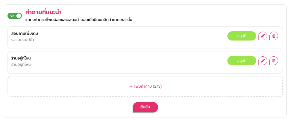 - คำถามที่แนะนำให้ลูกค้ากดเลือก