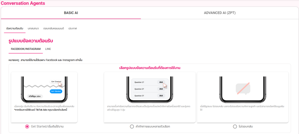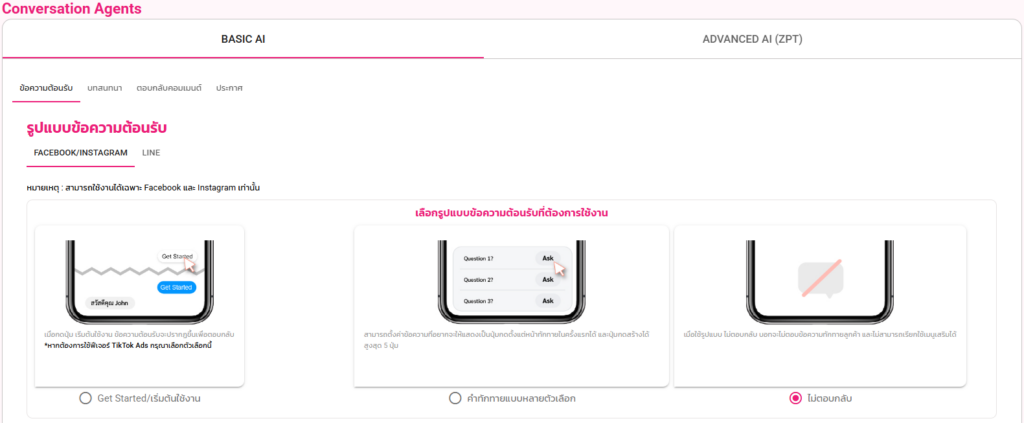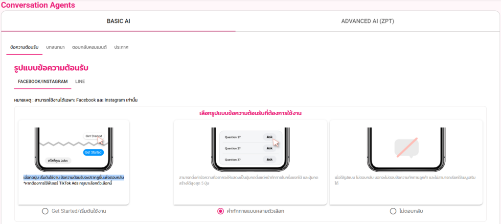 ในส่วนของ BASIC AI รูปแบบข้อความต้อนรับ จะแบ่งออกเป็น 2 ส่วนค่ะ