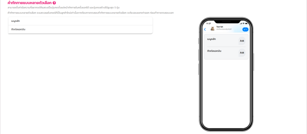 สามารถตั้งค่าข้อความที่อยากจะให้แสดงเป็นปุ่มกดตั้งแต่หน้าทักทายในครั้งแรกได้