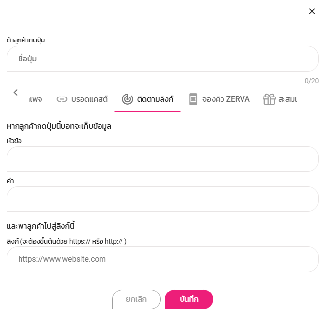 เมื่อมีลูกค้ากดปุ่มนี้ ระบบจะพาไปลิงก์ Website ที่ใส่ไว้ และนับค่าการกดต่อครั้ง = 1 ค่ะ