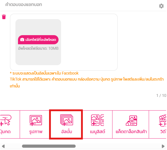 - อัลบั้มจะใส่ได้สูงสุด 10 รูปภาพ
