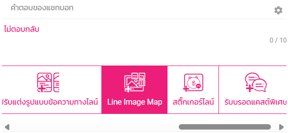 สามารถสร้างการตอบกลับแชทบอทบนแพลตฟอร์ม LINE ให้ตอบเป็น LINE Image Map เพียงแค่นำไฟล์รูปที่เราต้องการแล้วอัพโหลดเข้าระบบได้ง่ายๆ หรือถ้าต้องการให้กดรูปภาพแล้วลิงก์ไปยังเว็บไซต์ต่างๆ ก็สามารถใส่ลิงก์ URL เพิ่มเข้าไปได้เลย ดูวิธีการใช้งานได้ ที่นี่