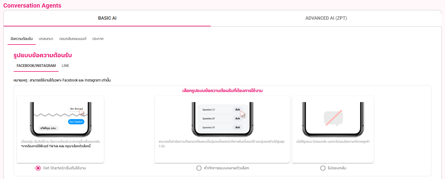 ในส่วนของ BASIC AI รูปแบบข้อความต้อนรับ จะแบ่งออกเป็น 2 ส่วนค่ะ