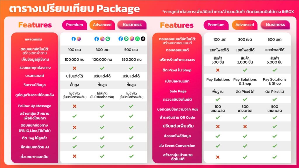 - รองรับ Pay Solutions & Shop พร้อมติด Pixel และระบบ Chat Commerce เต็มรูปแบบ