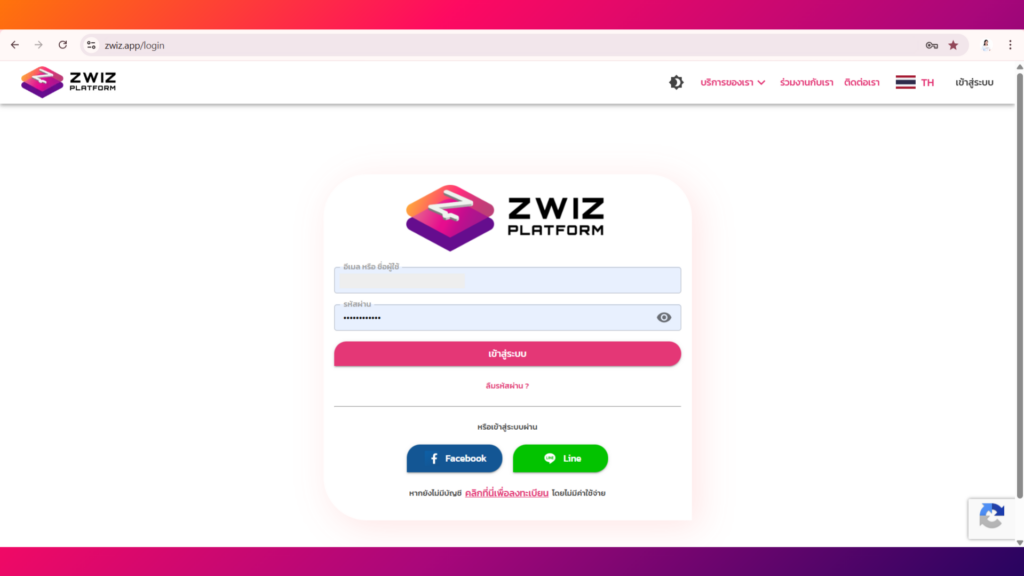 1. เข้าสู่ระบบที่ https://zwiz.app/login