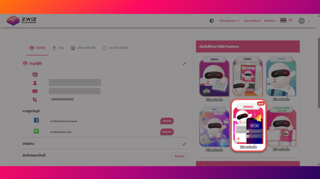 - บัญชีเข้าสู่ระบบ zwiz.app (เพื่อเข้าใช้งาน ZIGNAL)