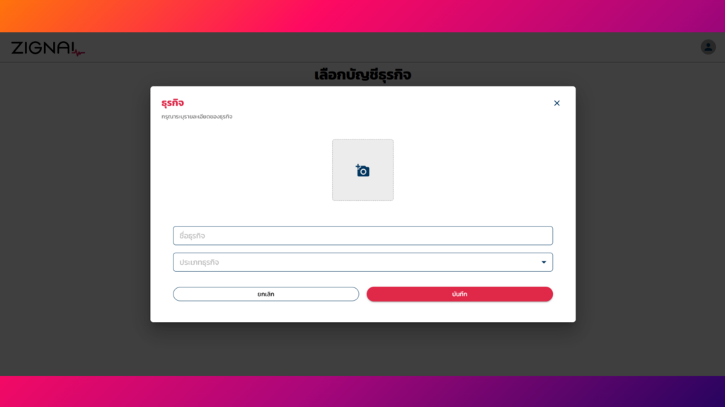 กรณียังไม่เคยสร้างบัญชีธุรกิจ : ระบบจะให้กรอกชื่อธุรกิจ และเลือกประเภทธุรกิจ จากนั้นกดปุ่มบันทึกได้เลย
