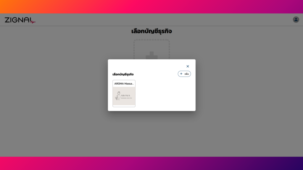 3. เลือกบัญชีธุรกิจที่ต้องการเชื่อมต่อ ZIGNAL