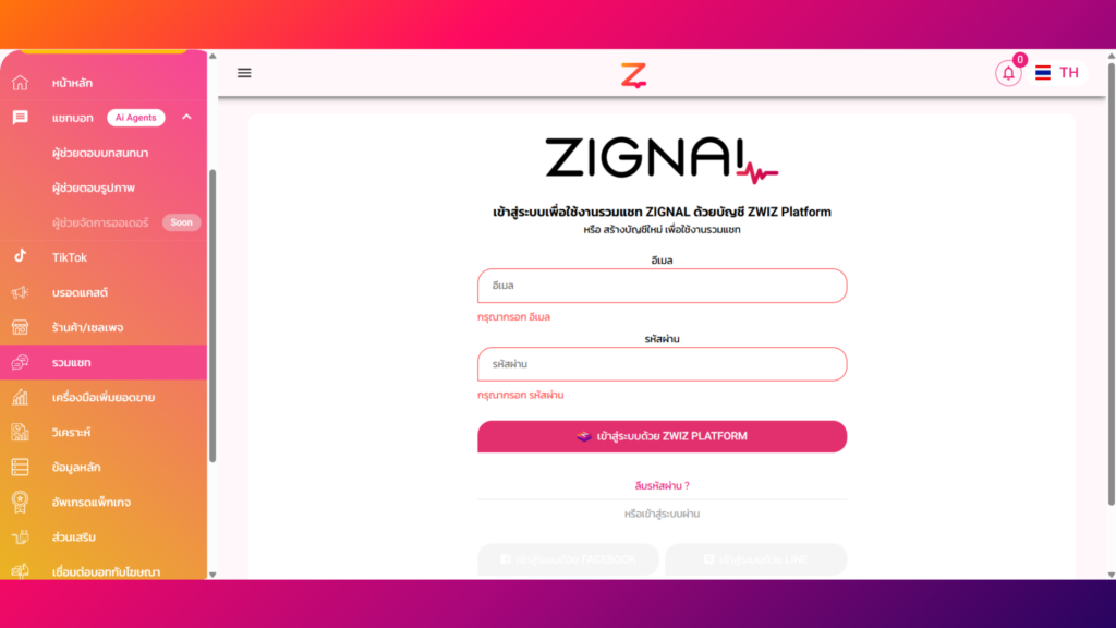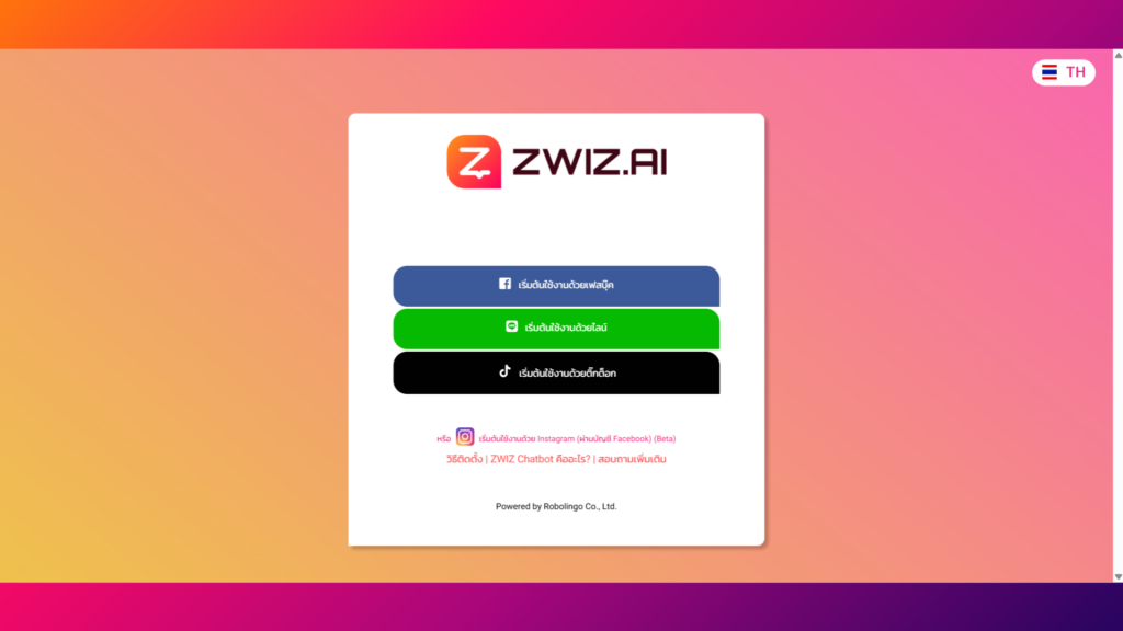 1. เข้าสู่ระบบ ZWIZ.AI แชทบอท https://cms.zwiz.ai/th/login
