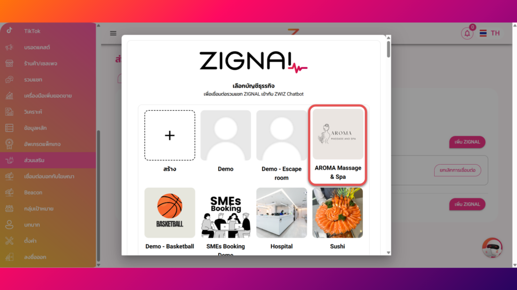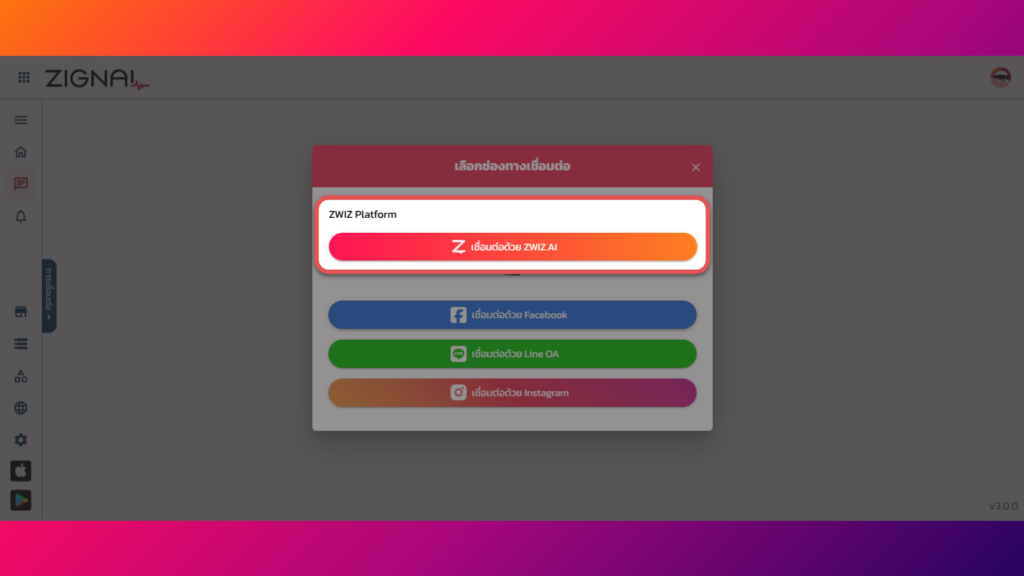 1. เชื่อมต่อจากระบบ ZIGNAL รวมแชท