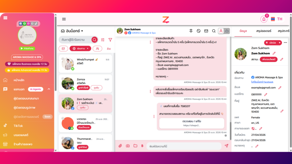 - สำหรับลูกค้าที่ใช้งาน ZWIZ.AI อยู่แล้ว : ระบบจะแสดงประวัติแชททั้งหมดที่เคยใช้งานบนซีวิซไว้ให้เลย ข้อมูล ครบ!