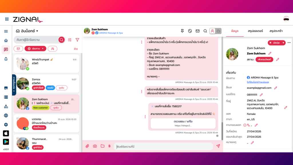 🔴กรณีเชื่อมต่อจาก : ระบบ ZIGNAL รวมแชท