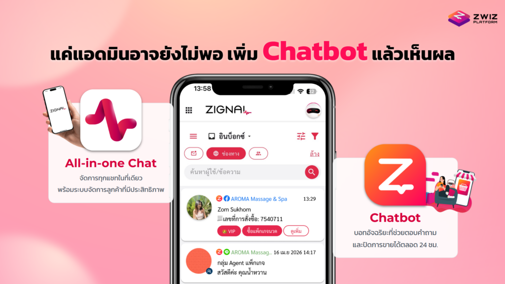 ยินดีต้อนรับสู่การเชื่อมต่อการใช้งานรวมแชท ZIGNAL Chat x ZWIZ.AI แชทบอท 🎉