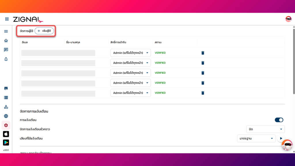 ⚠️หมายเหตุ : กรณีแอดมินคนอื่นต้องการเข้ามาใช้งานรวมแชทนี้ด้วย เพียงเพิ่มแอดมินที่ระบบหลังบ้าน ZIGNAL จากนั้นแอดมินท่านนั้นก็สามารถเข้าสู่ระบบเพื่อเข้ามาใช้งานหน้ารวมแชทนี้ได้เลย