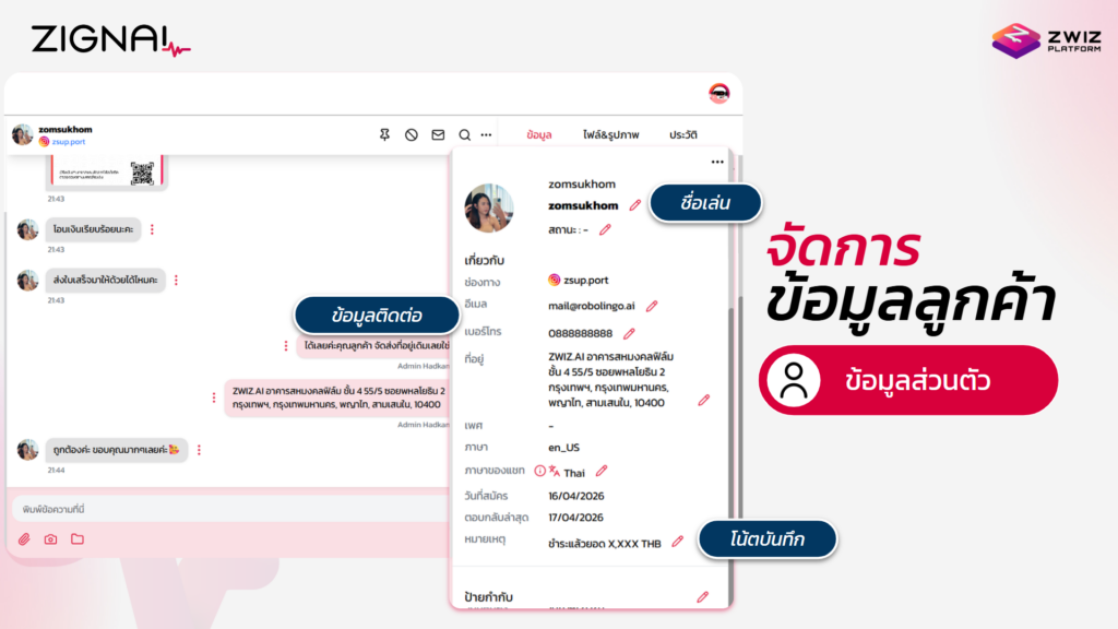 มากกว่าแค่แชท คือการ “รู้จัก” ลูกค้าให้ลึกกว่าเดิม ด้วยฟีเจอร์ “จัดการข้อมูลลูกค้า” ของ ZIGNAL