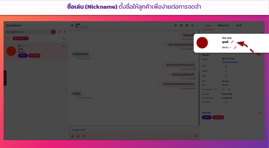 ตั้งชื่อที่เราจำง่าย (เช่น คุณเอ-ลูกค้าประจำ) โดยที่ชื่อจริงบนแพลตฟอร์มของลูกค้าก็ยังอยู่เหมือนเดิม