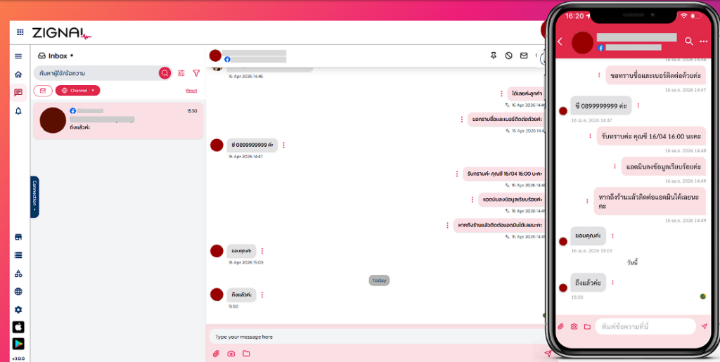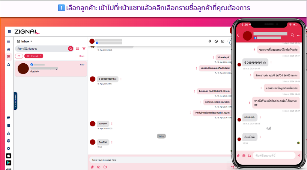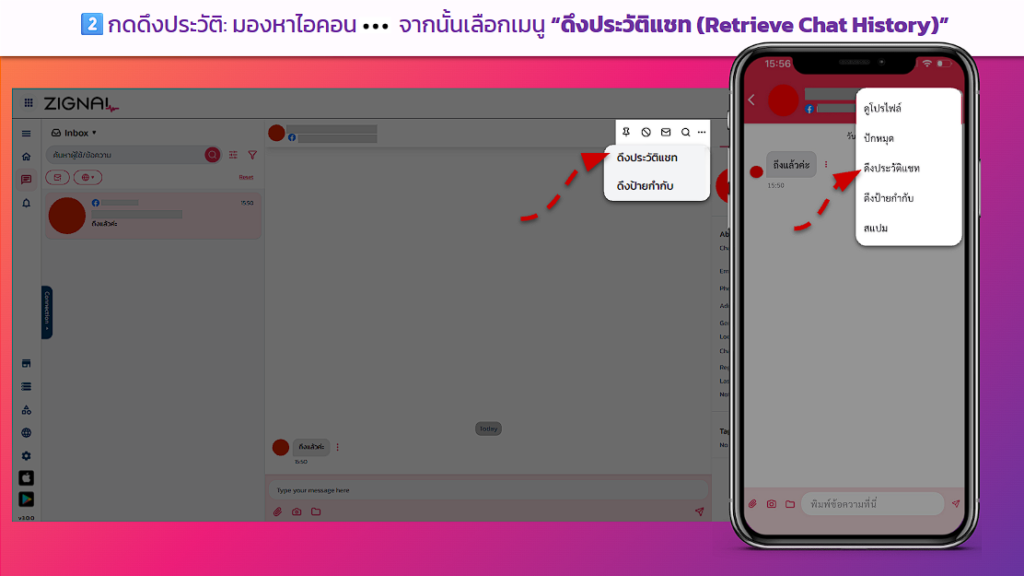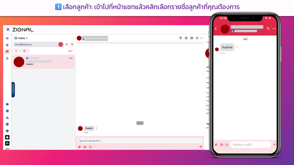 เท่านี้เรียบร้อย! ประวัติบทสนทนาที่เคยคุยกันไว้ก็จะมาแสดงผลบนหน้าจอ ZIGNAL ให้คุณเช็กย้อนหลังได้ทันที ช่วยให้ทีมรู้ใจลูกค้ามากขึ้น ไม่ต้องถามซ้ำให้เสียเวลา