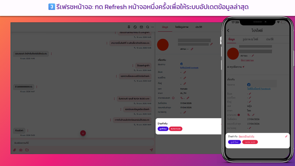 1.เลือกลูกค้า: เข้าไปที่หน้าแชทแล้วคลิกเลือกรายชื่อลูกค้าที่คุณต้องการ