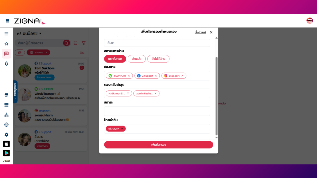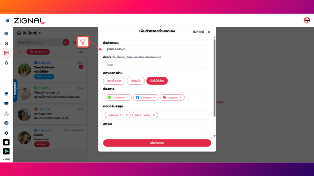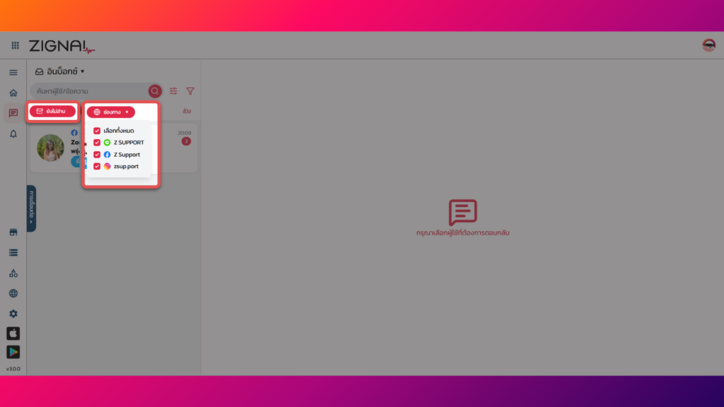 หรือจะค้นหาแชทที่ยังไม่ได้อ่านและช่องทางแบบเร็วๆ จุดนี้ก็สามารถกรองแชทลูกค้าได้เลย