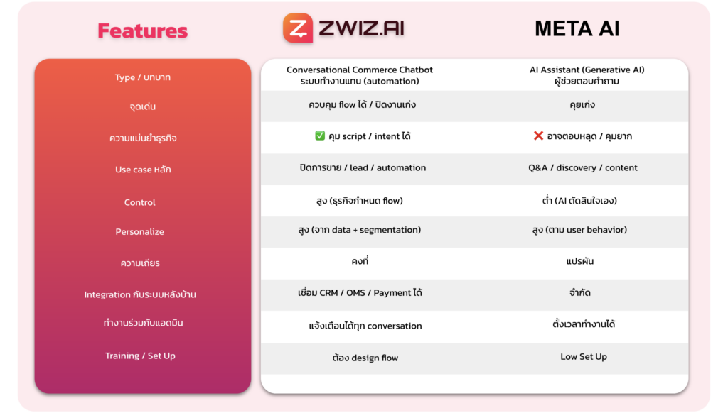 เพราะตอนนี้ทีมของเรา (ZWIZ.AI x Meta) กำลังพัฒนา Integration เพื่อรวมการทำงานของทั้งสองระบบให้เป็นหนึ่งเดียว
